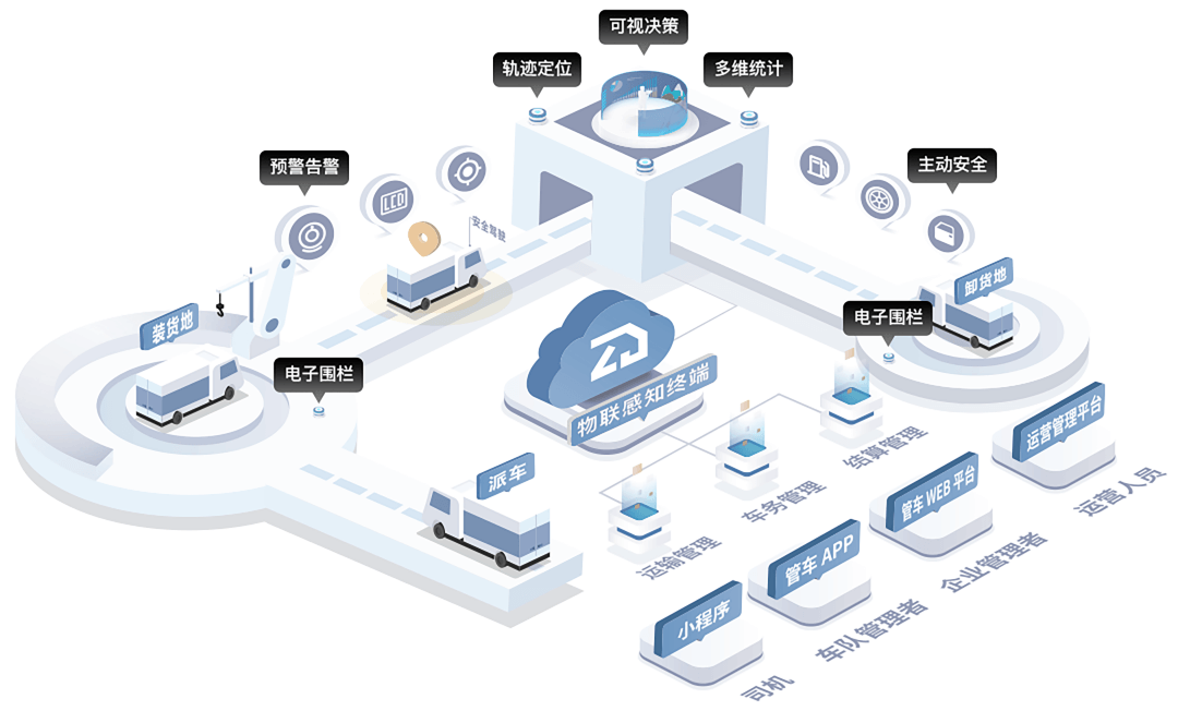 构建SaaS业务管理平台系统,通过安装在车辆上的智能终端与云平台的高效配合,经可视化管理实现对车辆的远程监控、司机管理、车辆管理、财务管理、风险数据分析等功能,提升车辆管理质量与效率。